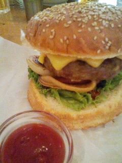 ボリュームたっぷりのハンバーガーも食べて